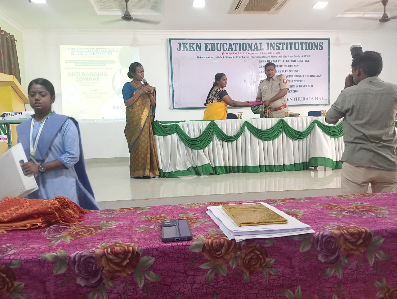The event commenced with a warm welcome, followed by an inspiring talk from our esteemed guest speaker, Thiru. T.A. Dhavamani, Inspector of Police, Kumarapalayam. His session provided valuable insights into the legal repercussions of ragging, the psychological impact on victims, and preventive measures to ensure a ragging-free educational environment.