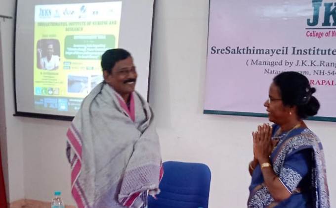 , Ph.D., the principal of the institute. The chief guest of the event was Mr. N. Raveendran, a Nature Educator, founder, and president of the Iragukal Amritha Nature Trust (I-ANT). During the event, Mr. N. Raveendran delivered a speech, providing detailed information about the Kalingarayan Anaicut and its canal history. The speech highlighted various aspects of the anaicut, including its construction, purpose, and significance. The chief guest shed light on the engineering marvel of the anaicut, which has been a vital water management structure in the region for several years. He also emphasized the historical importance of the canal, discussing its role in irrigation and agric. Students gained valuable insights into the rich history of Kalingarayan Aniacut and its canal. They learnt about the engineering marvel behind its construction, the socio-economic importance of the canal, and its impact on the agricultural practices in the area. Students were able to grasp the significance of preserving such historical structures and their contribution to society. Overall, the program organized by the Sresakthimayeil Institute of Nursing and Research provided an educational platform for students to learn about fascinating history of Kalingarayan Anaicut and its canal, broadening their understanding of this remarkable feat of engineering and its lasting impact on the region.